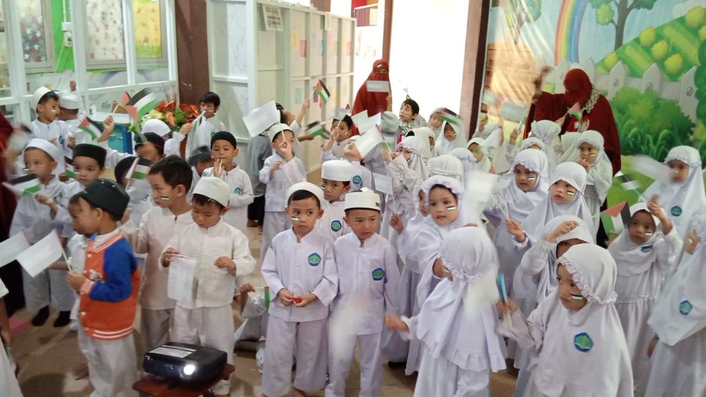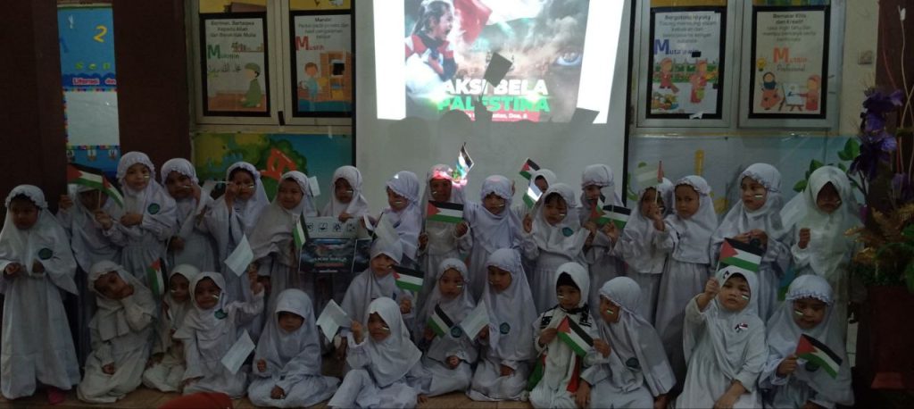 Semangat anak-anak terlihat antusias dalam mengikuti kegiatan tersebut. Berbagai atribut negara Palestina dan Indonesia baik itu berupa bendera, stiker wajah dan syal yang digunakan anak-anak untuk meramaikan gerakan aksi bela Palestina kali ini. Dalam gerakan aksi ini di tampilkan kepada anak-anak tentang kondisi daerah Palestina yang terkena dampak dari kekejaman zionis negara Israel. Aksi ini juga diisi dengan sumbangan lagu Palestina oleh ananda Ayyad dan Thufail. Anak-anak juga ikut mengibarkan dan melambai-lambaikan bendera Palestina yang di pegang sambilkan menyanyikan lagu aksi bela Palestina. Kegiatan ini ditutup dengan aksi solidaritas berupa penggalangan dana dari anak-anak dan orang tua murid TK Wahdah.
