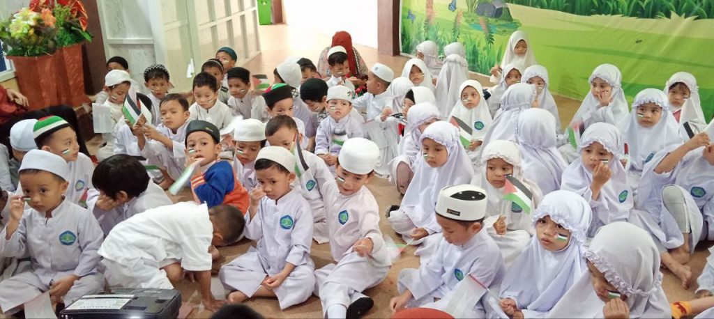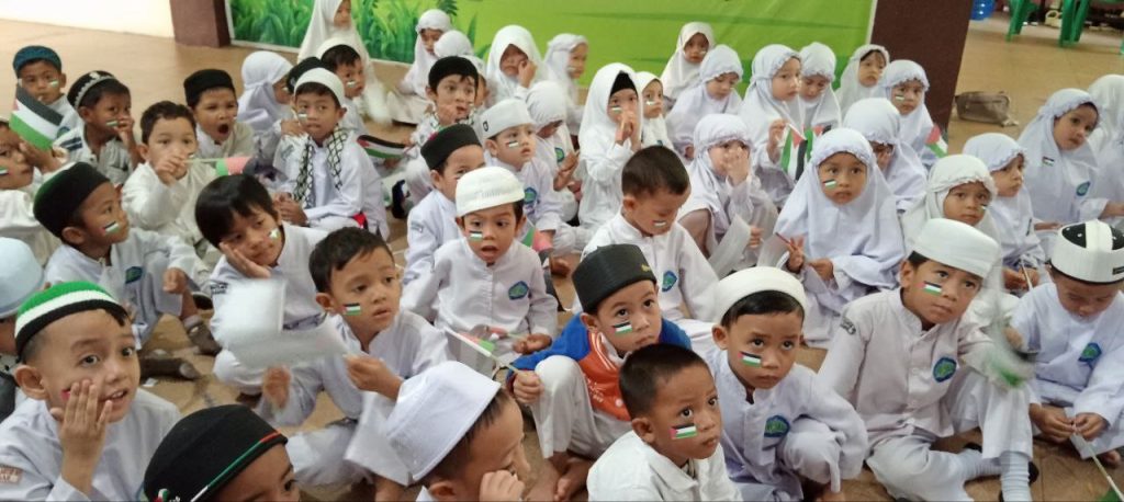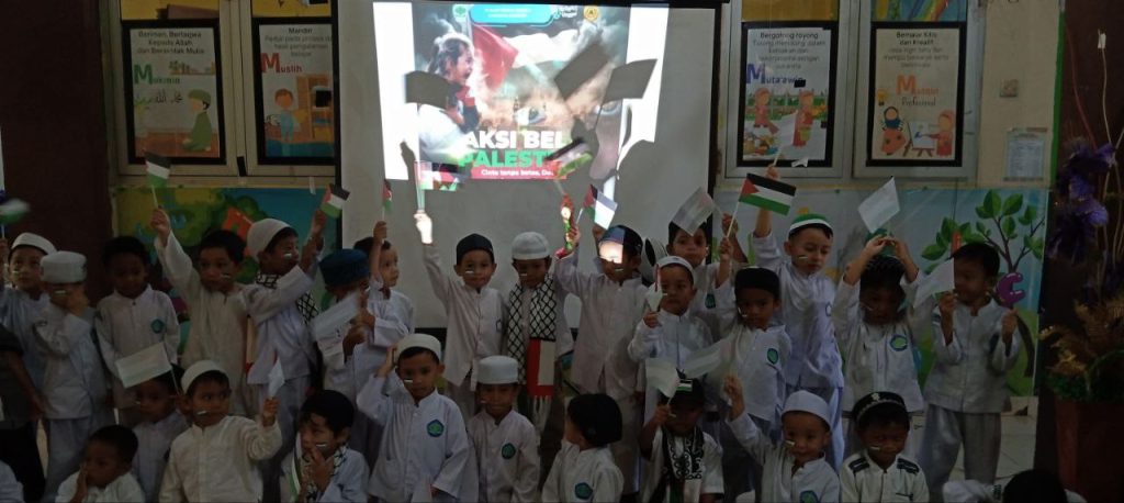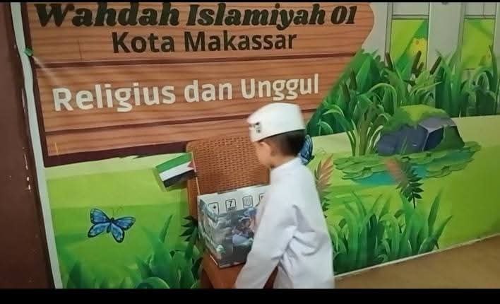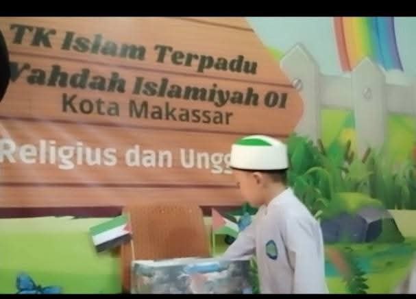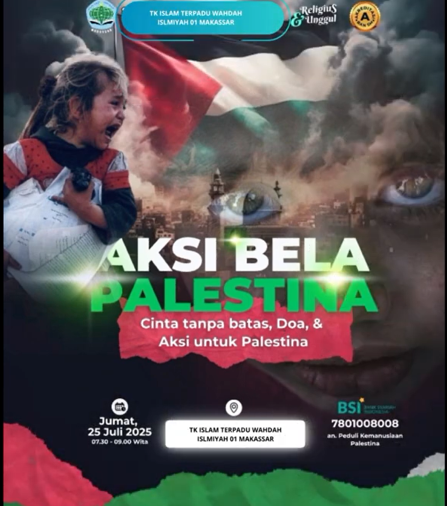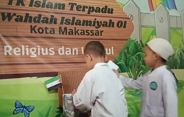 Makassar 25 Juli 2025. Hari Jumat anak-anak TK Islam Terpadu Wahdah Islamiyah 01 Makassar kembali mengadakan gerakan aksi bela Palestina di lingkungan sekolah. Kegiatan ini dilaksanakan sebagai bentuk solidaritas dan kepedulian dari anak-anak TK Wahdah yang ikut merasakan penderitaan yang dialami oleh masyarakat Palestina.