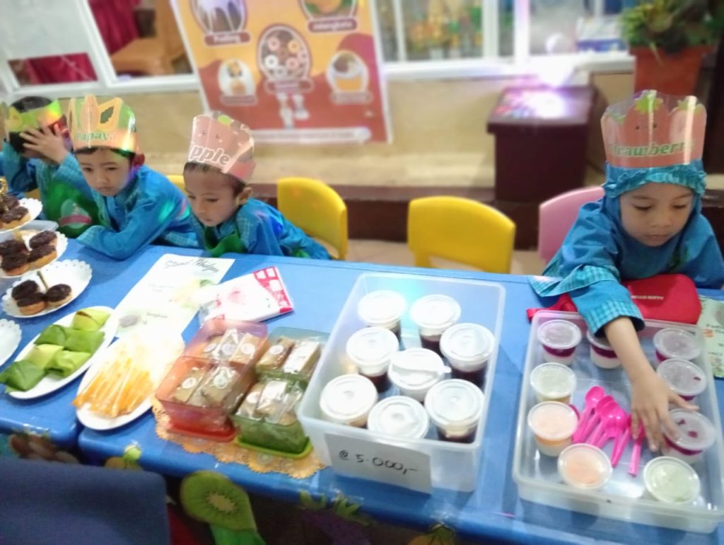 - Transaksi Jual Beli: Anak didik bertindak sebagai penjual (seller) di stand masing-masing dengan bimbingan ustazah dan orang tua.