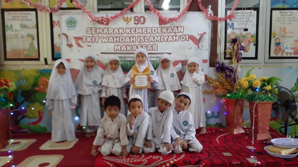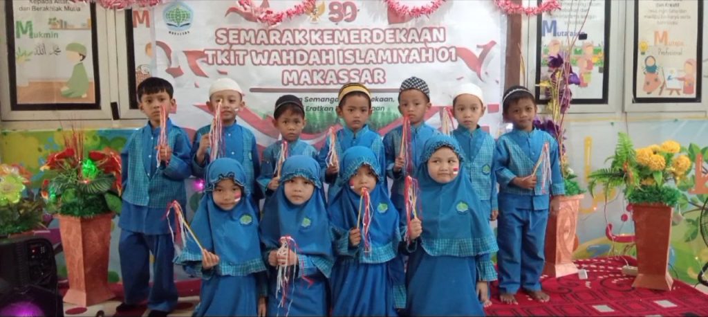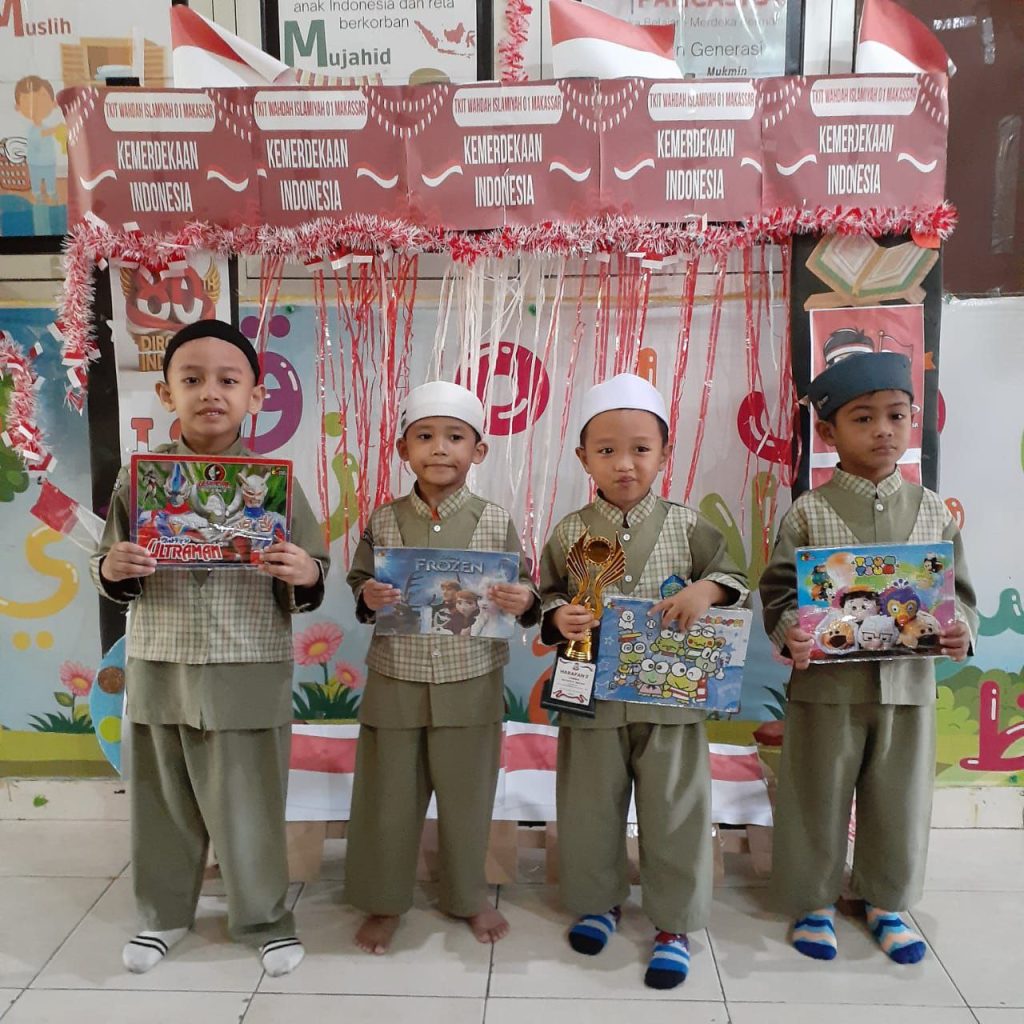 Makassar, 18 – 22 Agustus 2025, puluhan anak dari TK Islam Terpadu Wahdah Islamiyah 01 Makassar sangat antusias mengikuti berbagai lomba dalam rangka memeriahkan Semarak Kemerdekaan di tahun 2025. Kegiatan di buka dengan sambutan kepala TK ustazah Hafidah, S.Pd. dan di lanjutkan dengan berbagai kegiatan lomba. Di mulai di hari Senin saat anak-anak libur, orang tua mengarahkan anak-anak untuk dapat mandiri sendiri di rumah untuk merapikan tempat tidur masing-masing. Dan kegiatan tersebut di dokumentasikan lalu di kirimkan ke grup kelas masing-masing. Yang menjadi juri dalam kegiatan lomba ini adalah kepala satuan pendidikan.